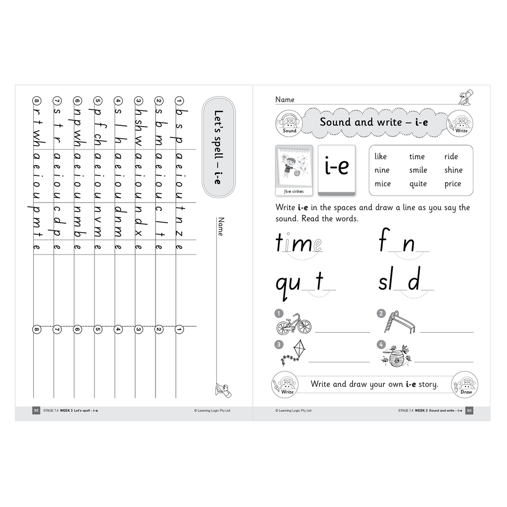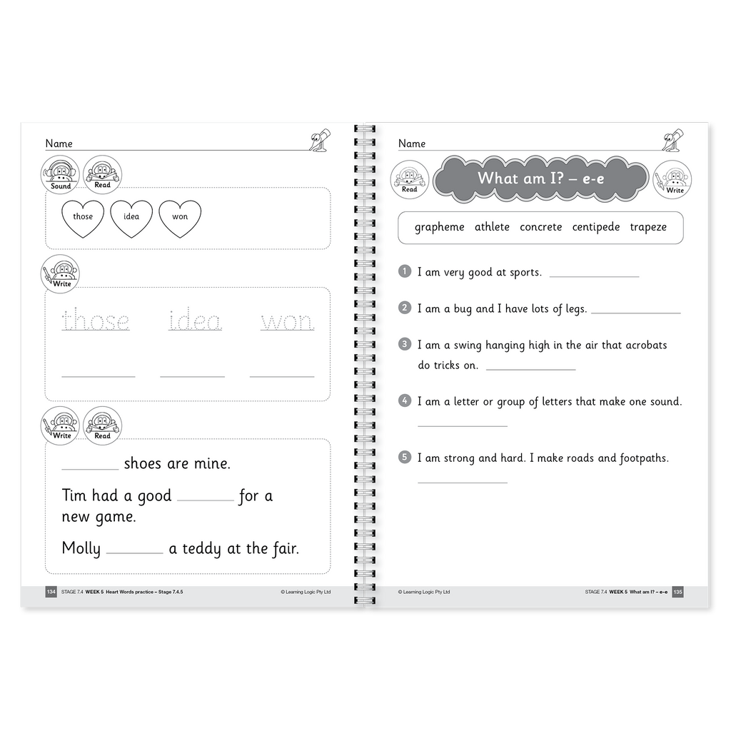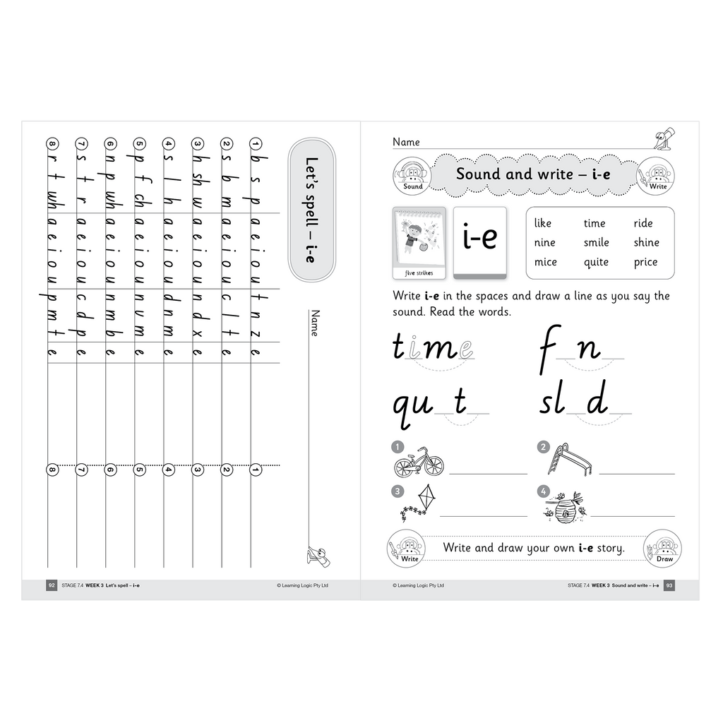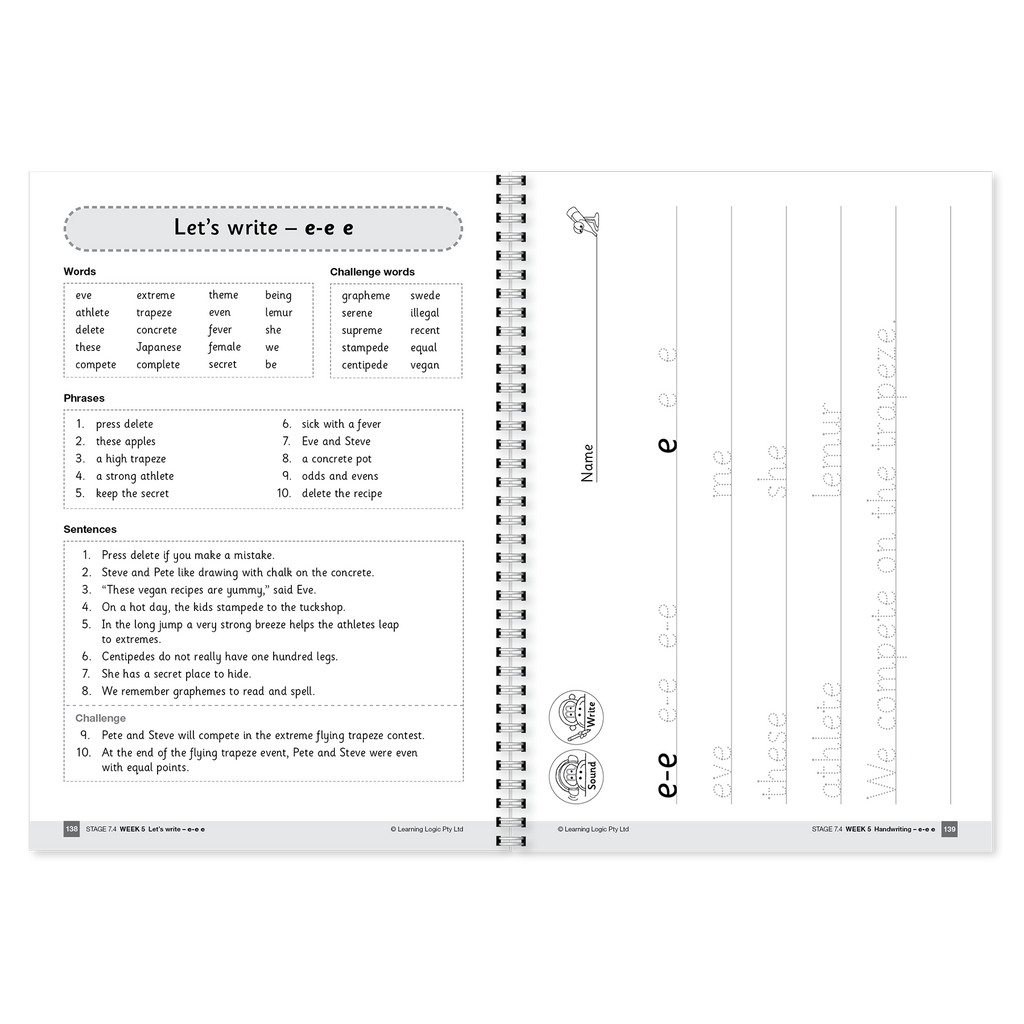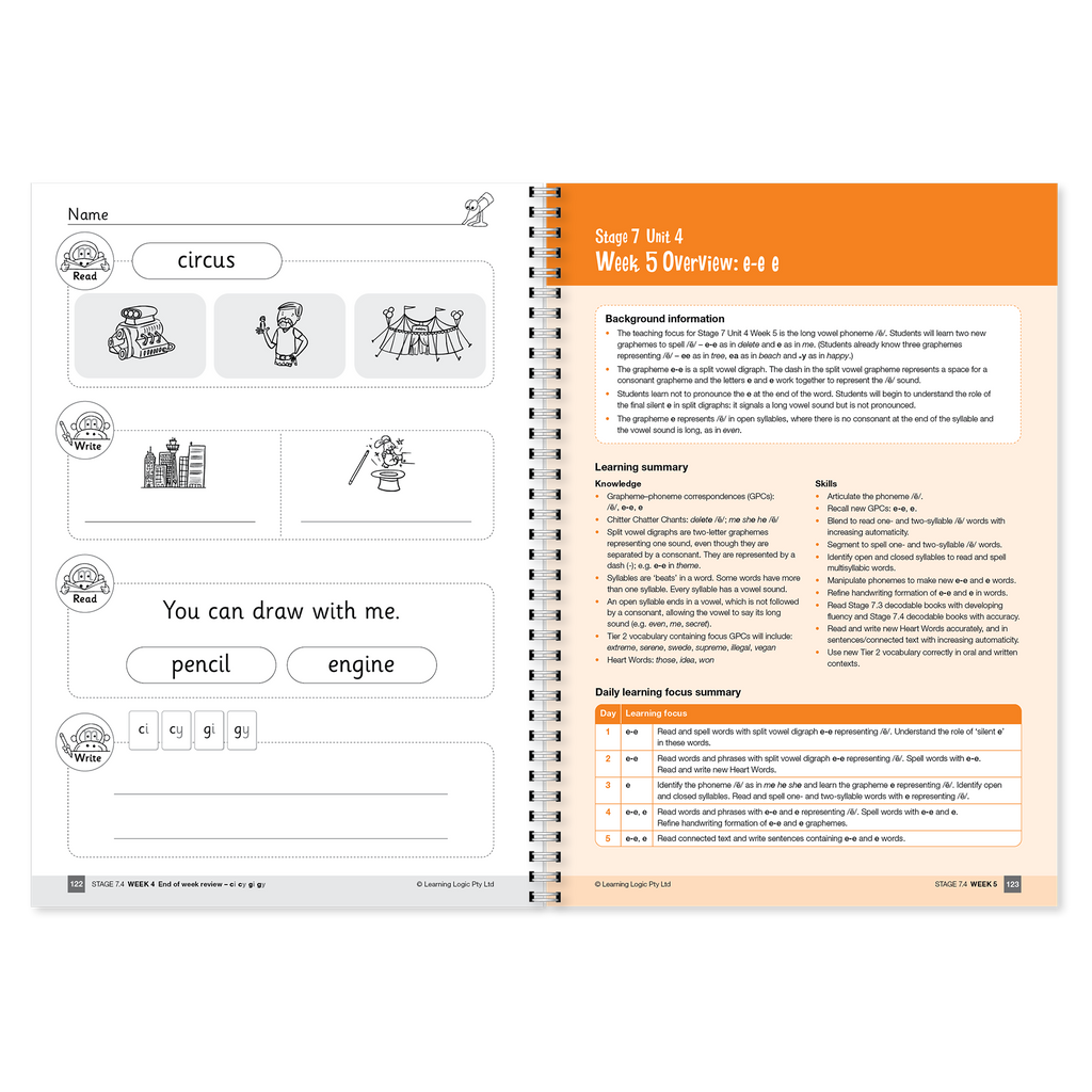 Explicit teaching support and carefully constructed practice activities for reading, spelling and writing.