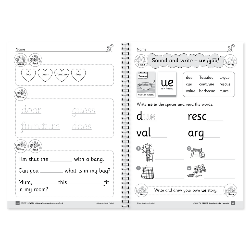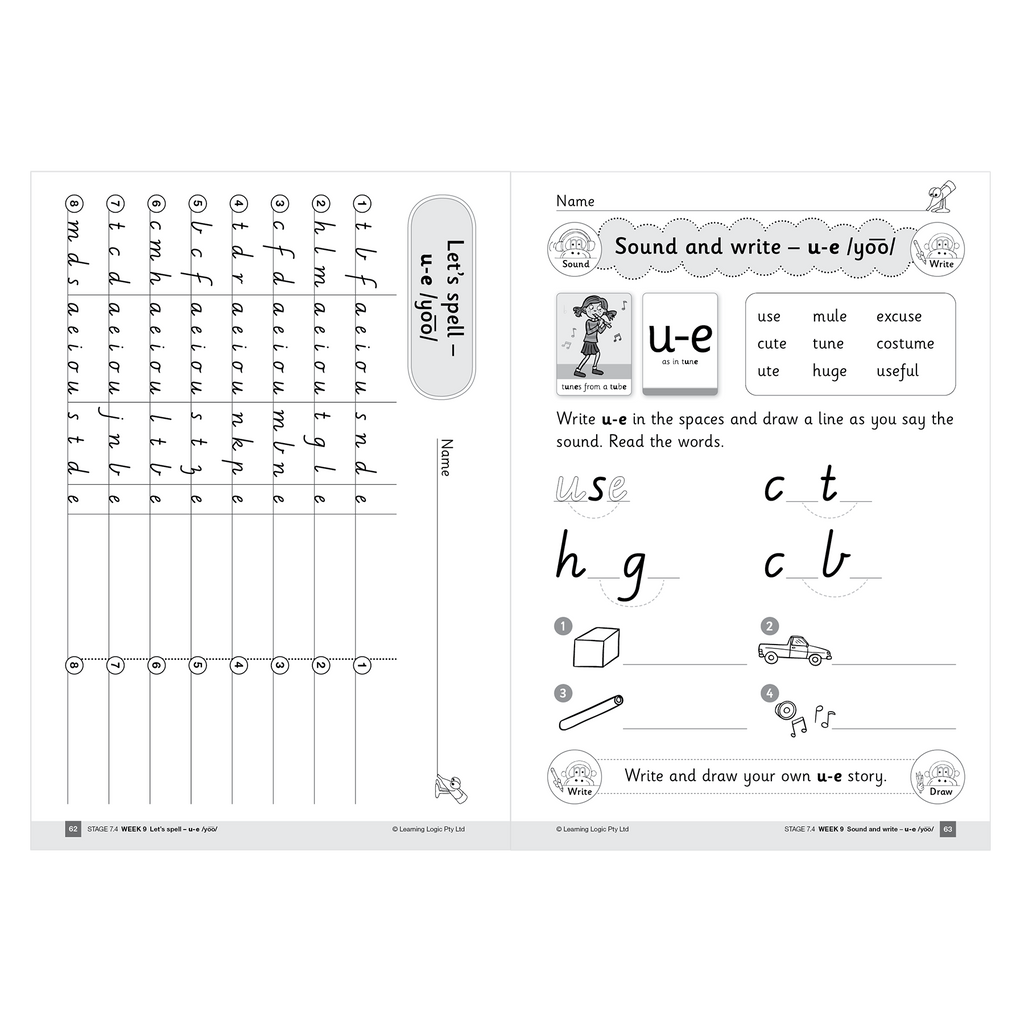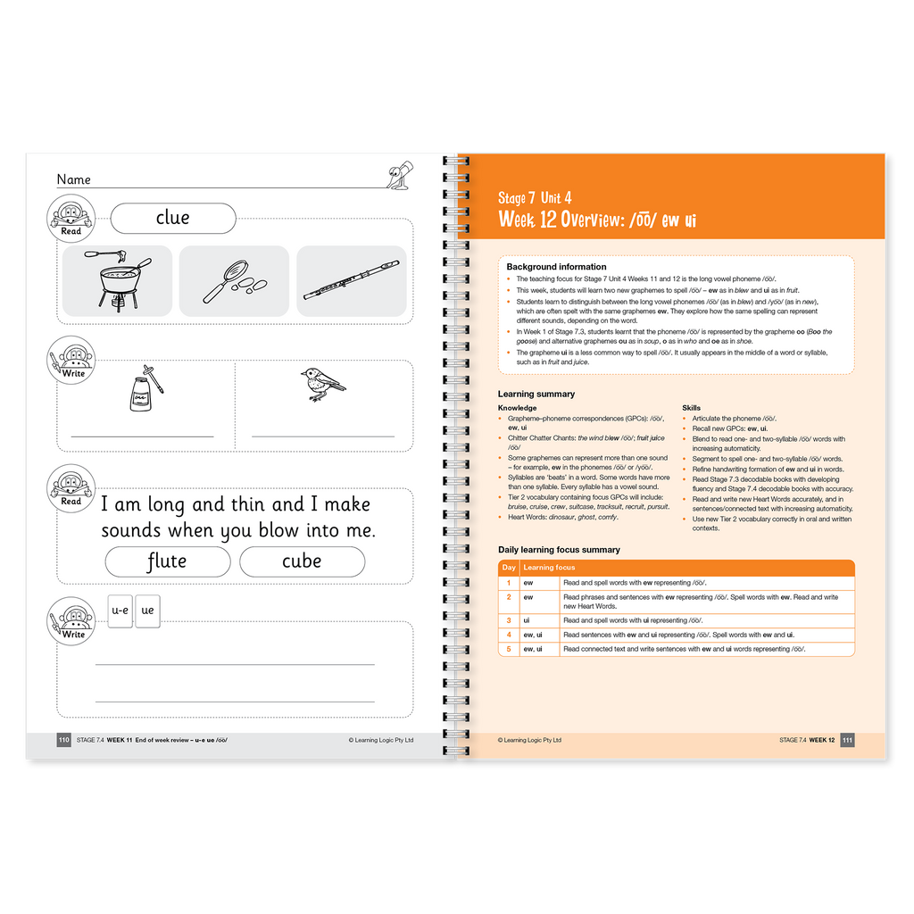 Explicit teaching support and carefully constructed practice activities for reading, spelling and writing.